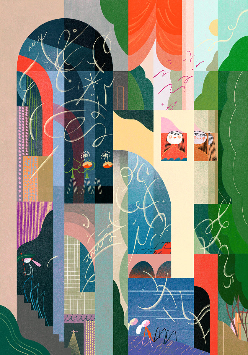 35 x 50cm Fine art Giclée with screenprinted gold accents (approx 14" x 20")